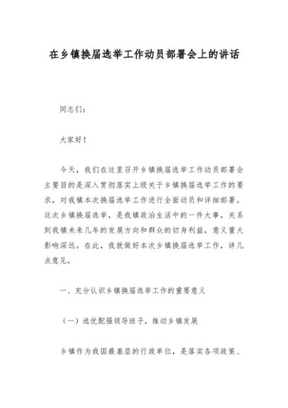 / 在乡镇换届选举工作动员部署会上的讲话
