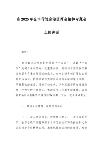/ 在2025年全市传达自治区两会精神专题会上的讲话