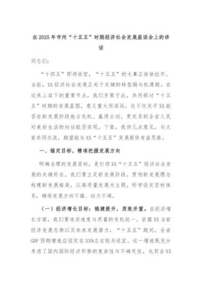 / 在2025年市州“十五五”时期经济社会发展座谈会上的讲话