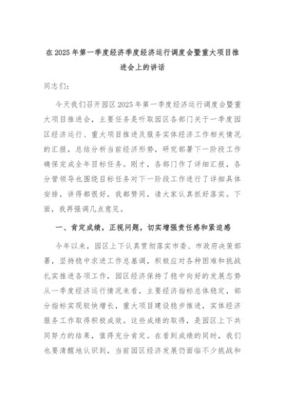 / 在2025年第一季度经济季度经济运行调度会暨重大项目推进会上的讲话