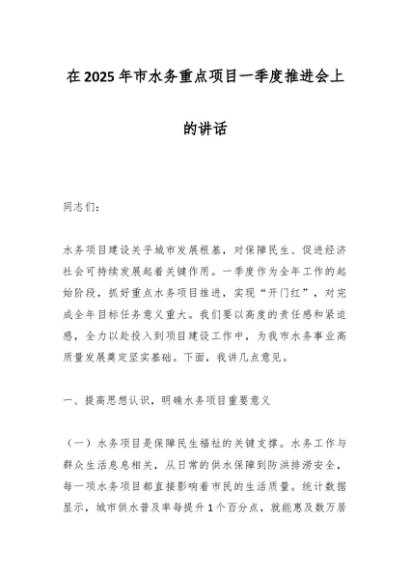 / 在2025年市水务重点项目一季度推进会上的讲话