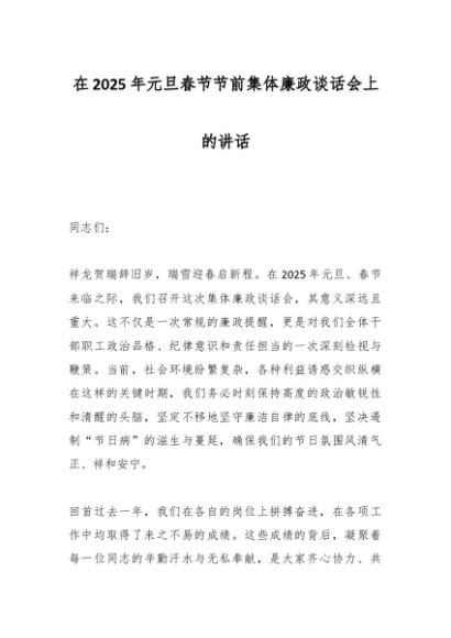/ 在2025年元旦春节节前集体廉政谈话会上的讲话
