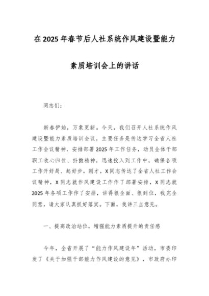 / 在2025年春节后人社系统作风建设暨能力素质培训会上的讲话