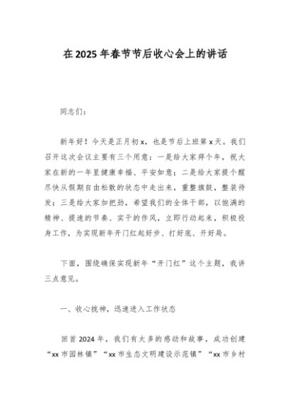 / 在2025年春节节后收心会上的讲话