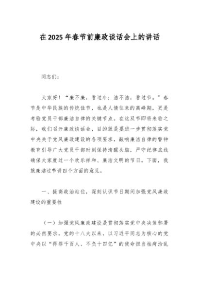 / 在2025年春节前廉政谈话会上的讲话