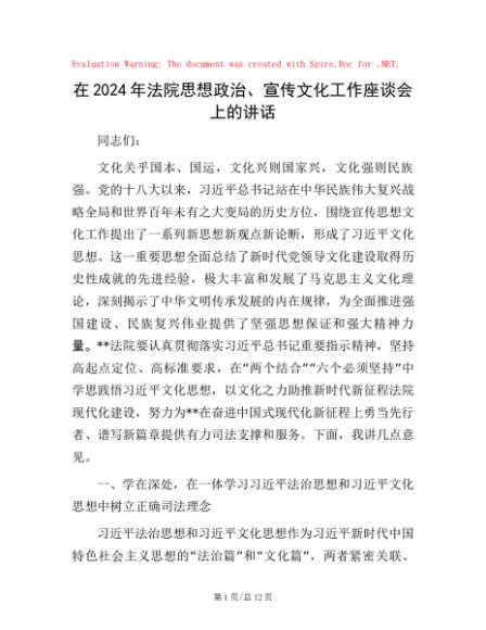 / 在2024年法院思想政治、宣传文化工作座谈会上的讲话