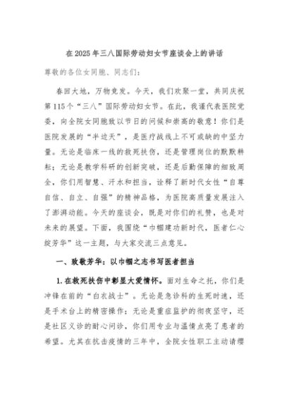 / 在2025年三八国际劳动妇女节座谈会上的讲话
