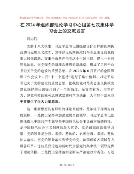 / 在2024年组织部理论学习中心组第七次集体学习会上的交流发言