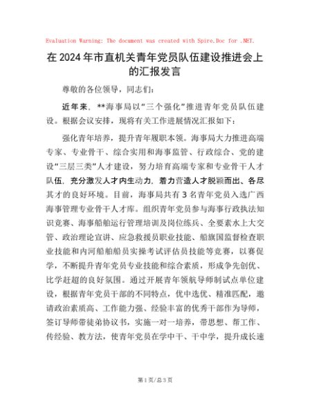 / 在2024年市直机关青年党员队伍建设推进会上的汇报发言