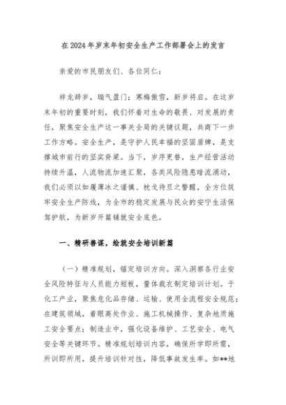 / 在2024年岁末年初安全生产工作部署会上的发言