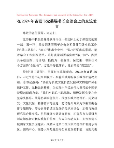 / 在2024年省辖市党委秘书长座谈会上的交流发言