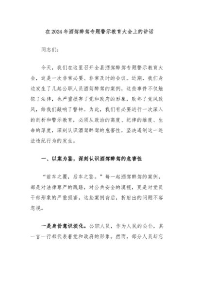 / 在2024年酒驾醉驾专题警示教育大会上的讲话
