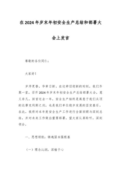 / 在2024年岁末年初安全生产总结和部署大会上发言
