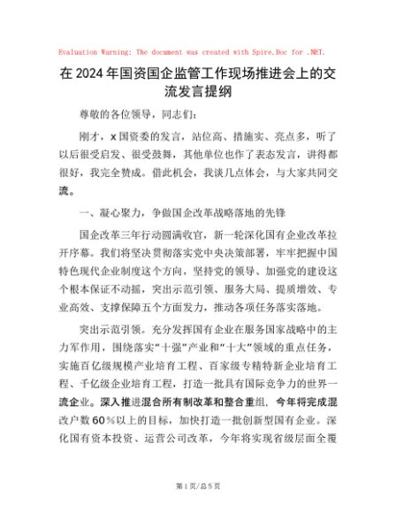 / 在2024年国资国企监管工作现场推进会上的交流发言提纲