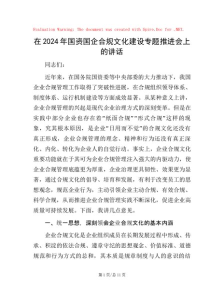 / 在2024年国资国企合规文化建设专题推进会上的讲话