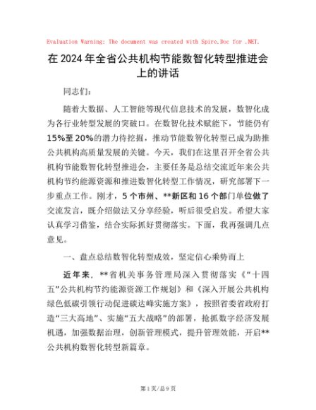 / 在2024年全省公共机构节能数智化转型推进会上的讲话