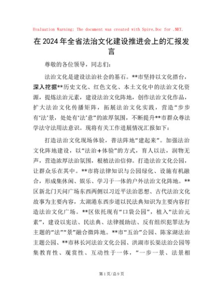 / 在2024年全省法治文化建设推进会上的汇报发言