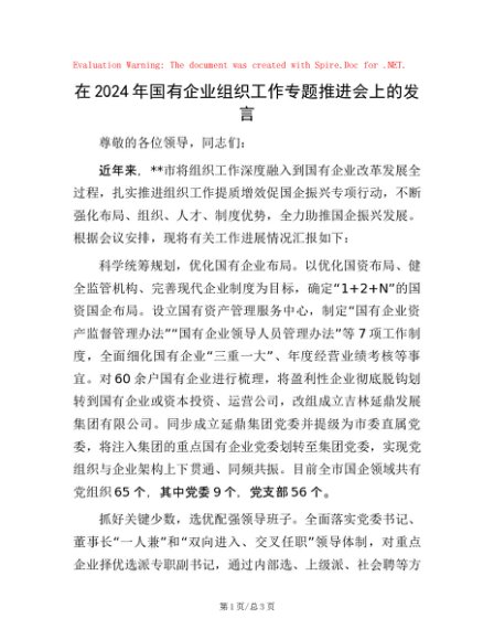 / 在2024年国有企业组织工作专题推进会上的发言
