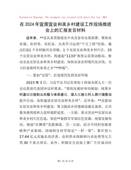 / 在2024年宜居宜业和美乡村建设工作现场推进会上的汇报发言材料