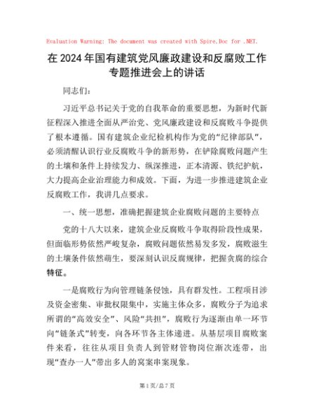/ 在2024年国有建筑党风廉政建设和反腐败工作专题推进会上的讲话