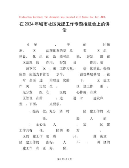 / 在2024年城市社区党建工作专题推进会上的讲话