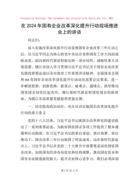 / 在2024年国有企业改革深化提升行动现场推进会上的讲话