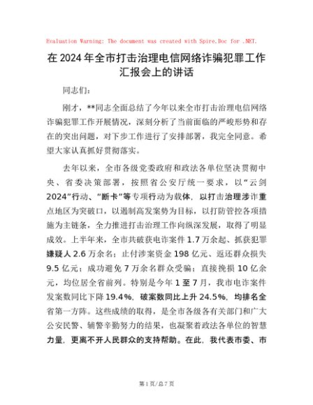 / 在2024年全市打击治理电信网络诈骗犯罪工作汇报会上的讲话