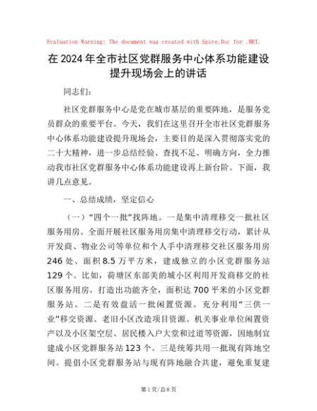 / 在2024年全市社区党群服务中心体系功能建设提升现场会上的讲话