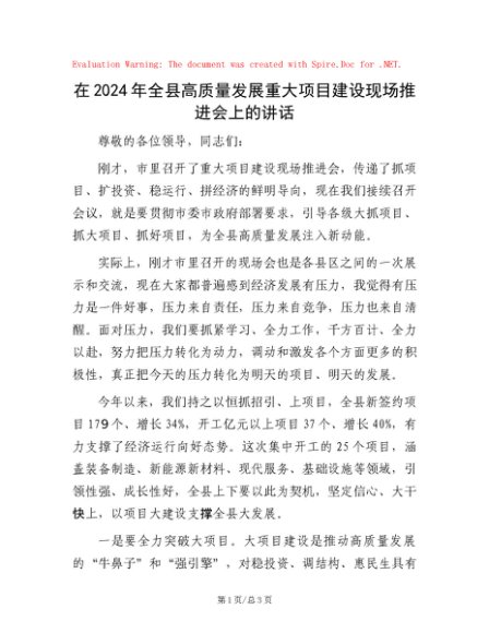 / 在2024年全县高质量发展重大项目建设现场推进会上的讲话