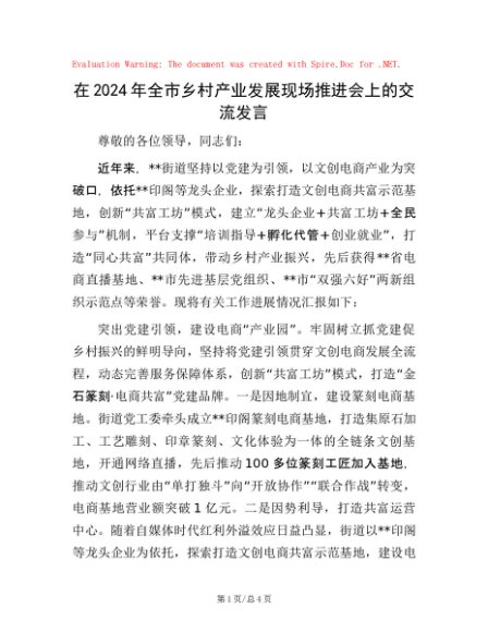 / 在2024年全市乡村产业发展现场推进会上的交流发言