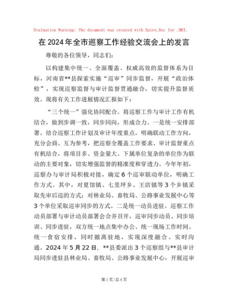 / 在2024年全市巡察工作经验交流会上的发言