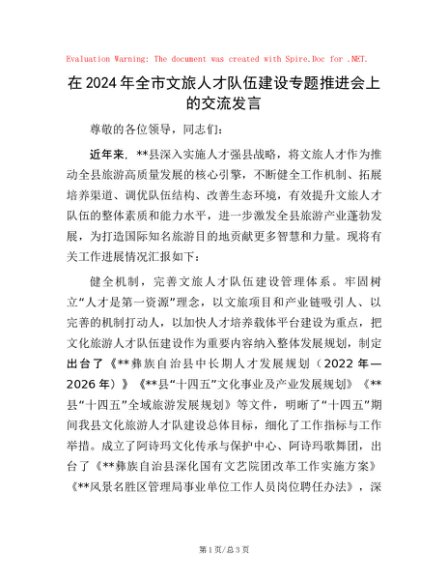 / 在2024年全市文旅人才队伍建设专题推进会上的交流发言