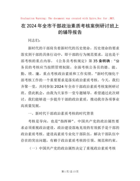 / 在2024年全市干部政治素质考核案例研讨班上的辅导报告