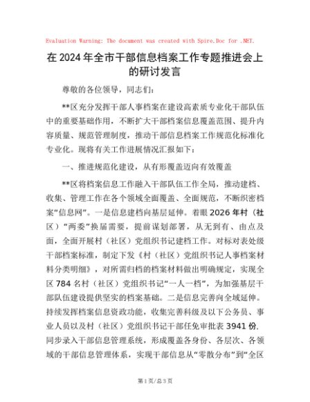 / 在2024年全市干部信息档案工作专题推进会上的研讨发言