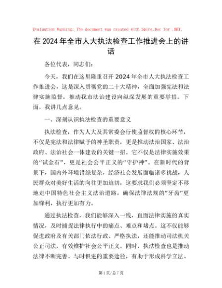 / 在2024年全市人大执法检查工作推进会上的讲话