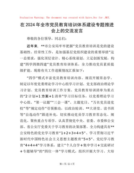 / 在2024年全市党员教育培训体系建设专题推进会上的交流发言