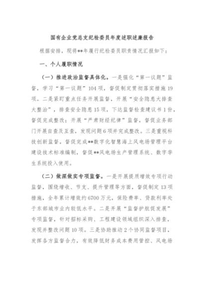 / 国有企业党总支纪检委员年度述职述廉报告