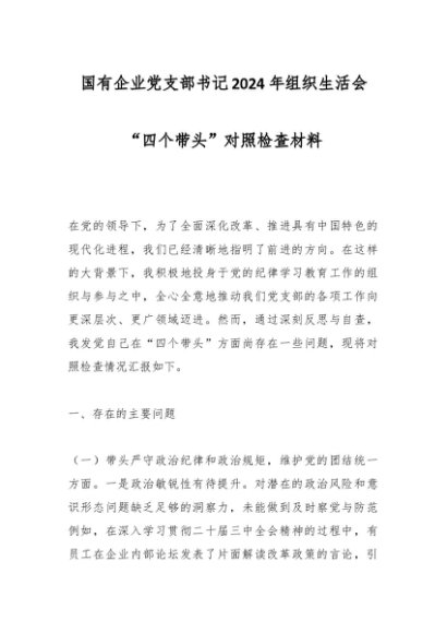 / 国有企业党支部书记2024年组织生活会“四个带头”对照检查材料