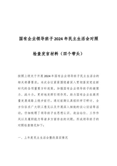 / 国有企业领导班子2024年民主生活会对照检查发言材料(四个带头)