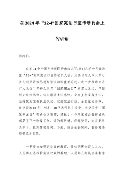 在2024年“12·4”国家宪法日宣传动员会上的讲话
