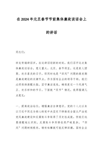 / 在2024年元旦春节节前集体廉政谈话会上的讲话