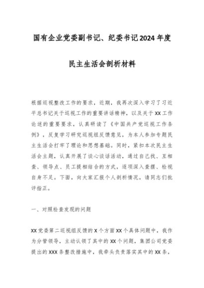 / 国有企业党委副书记、纪委书记2024年度民主生活会剖析材料