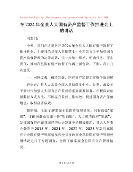 / 在2024年全县人大国有资产监督工作推进会上的讲话