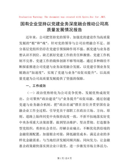 / 国有企业坚持以党建业务深度融合推动公司高质量发展情况报告