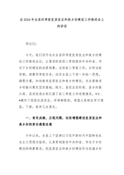 / 在2024年全县四季度宜居宜业和美乡村建设工作推进会上的讲话