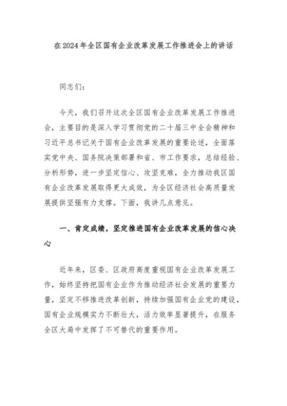 / 在2024年全区国有企业改革发展工作推进会上的讲话