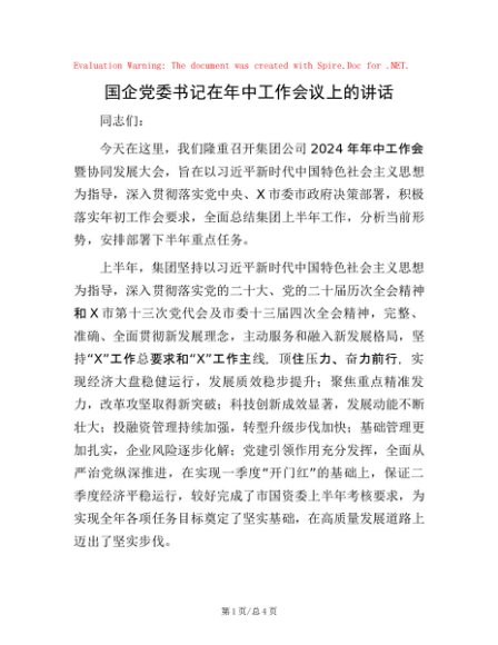 / 国企党委书记在年中工作会议上的讲话