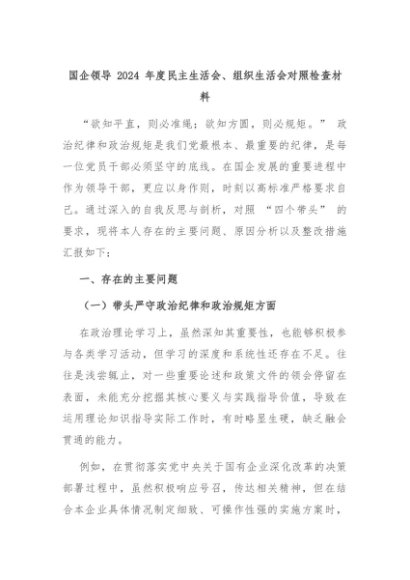 / 国企领导 2024 年度民主生活会、组织生活会对照检查材料