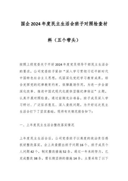 / 国企2024年度民主生活会班子对照检查材料(五个带头)