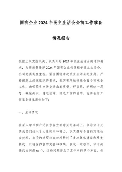 / 国有企业2024年民主生活会会前工作准备情况报告